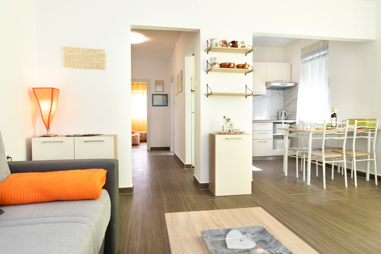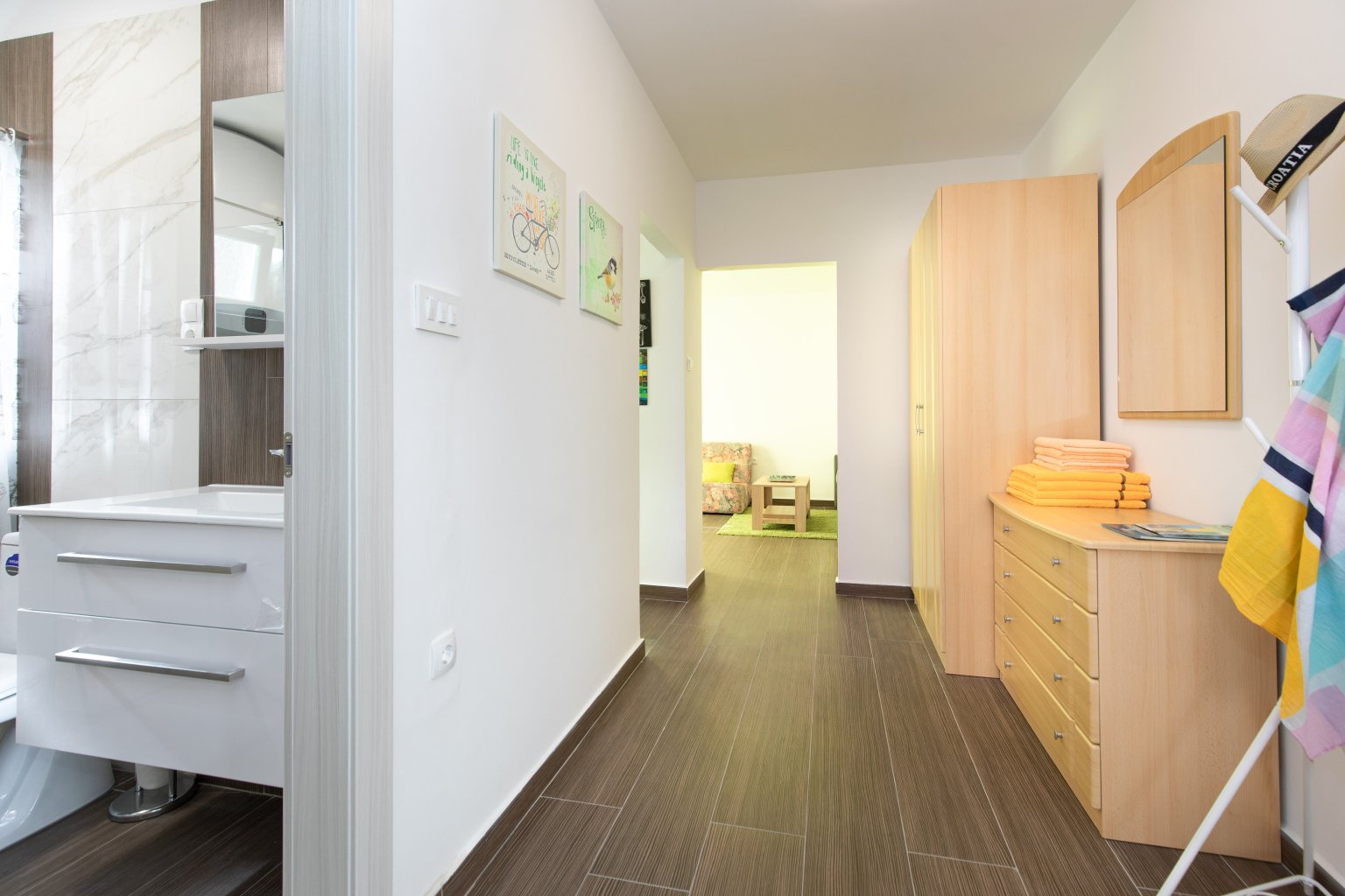 Prizemlje, unutarnja kvadratura apartmana 51 m2, WiFi, TV uređaj, klimatizirano, posteljina i ručnici mijenjaju se tjedno, završno čišćenje prostora uključeno u cijenu.